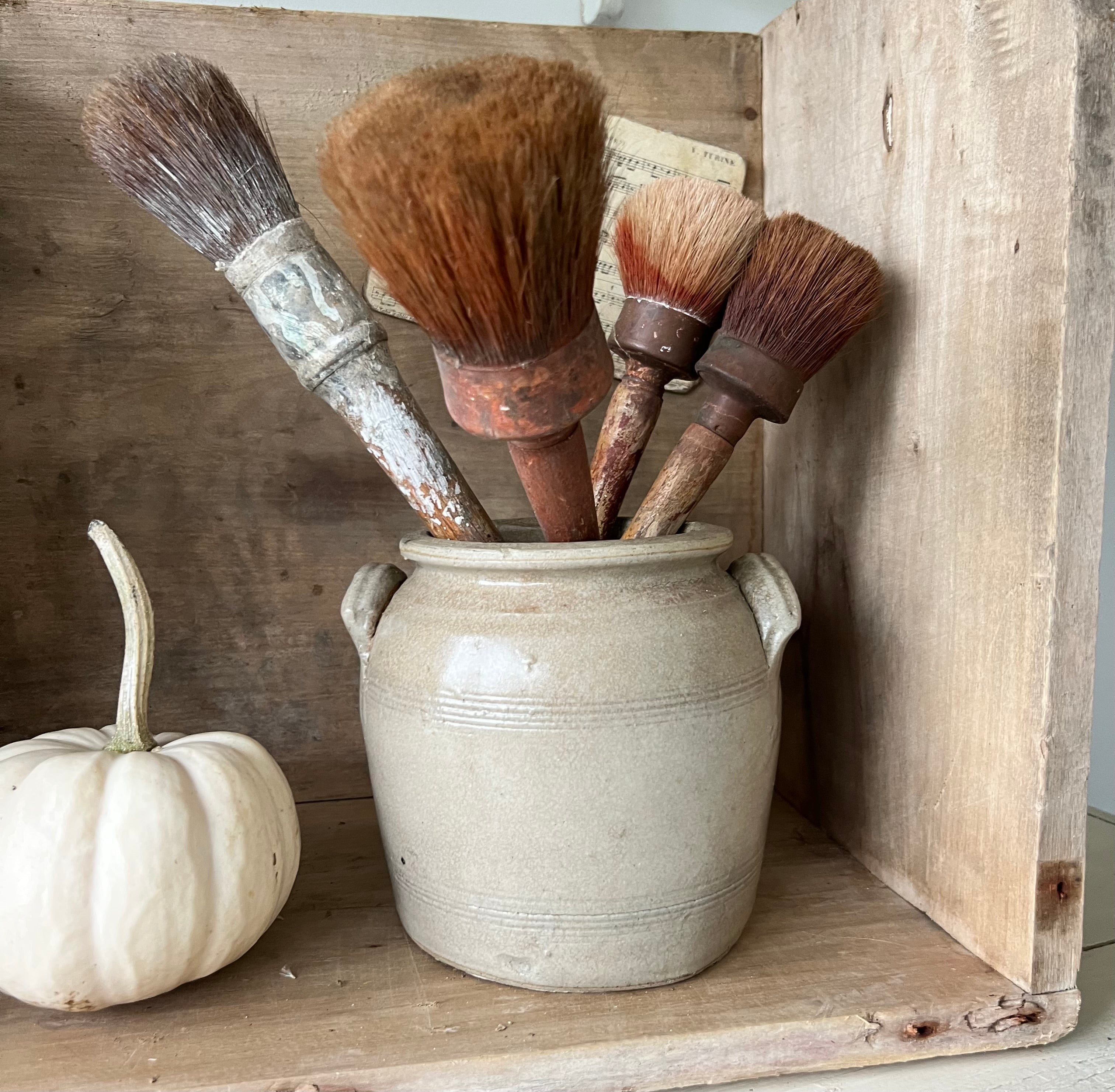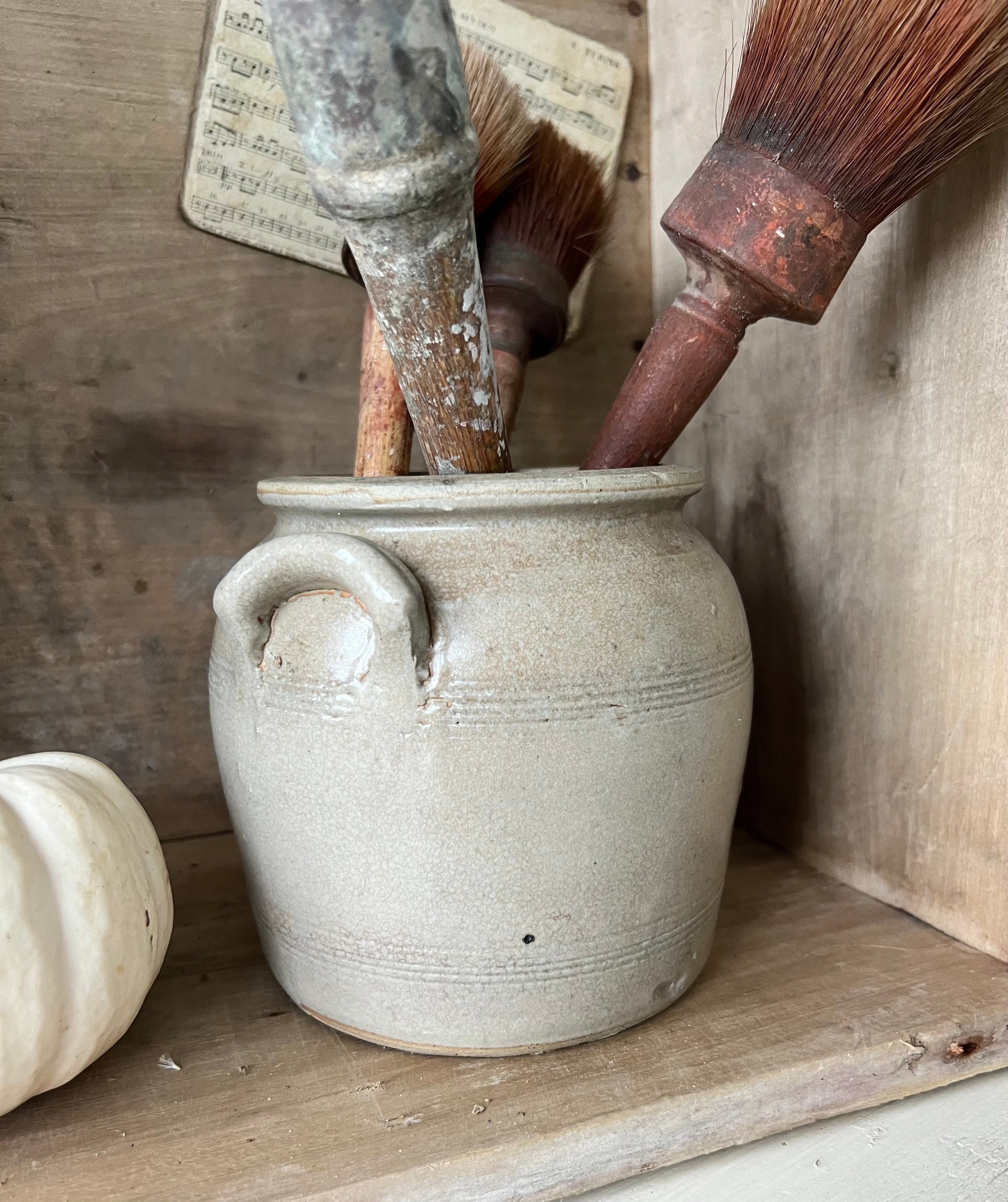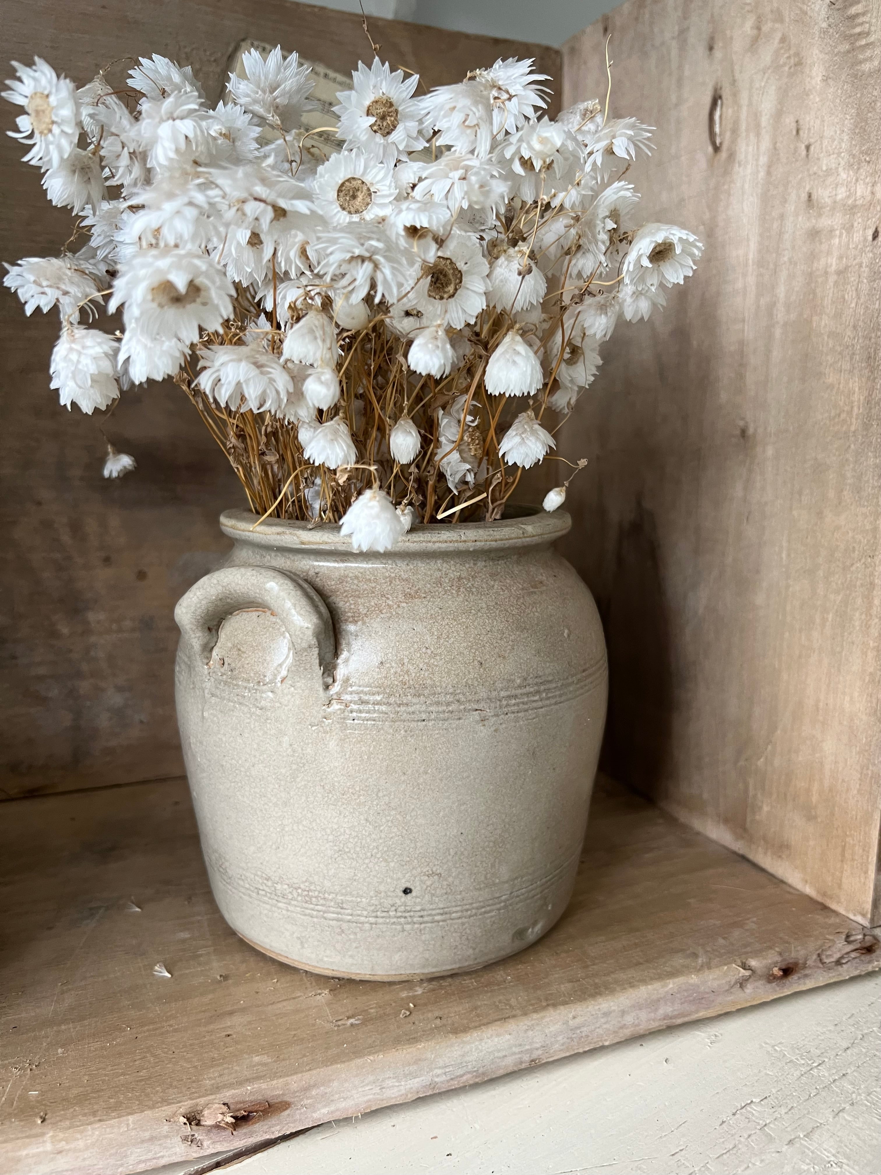 Always a favourite thing to find in France but it’s harder to find the small sized ones. Great for some blooms, to hold utensils or just to look great on a shelf or table. This one is a lovely darker stone colour with the traditional’ears’.