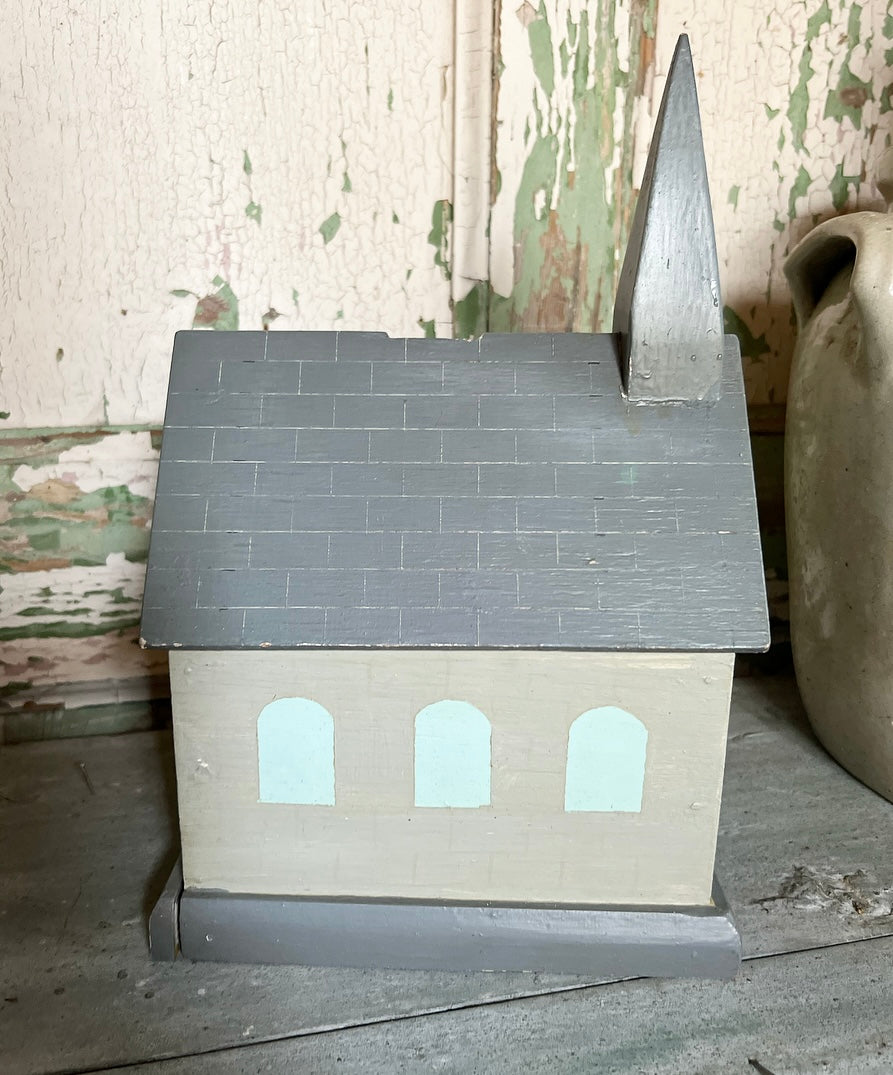 This is charming, a scratch built money box in the form of a simple Church. The colours are delightful and it would look lovely displayed on a shelf or side table .. you could even save up for something special!