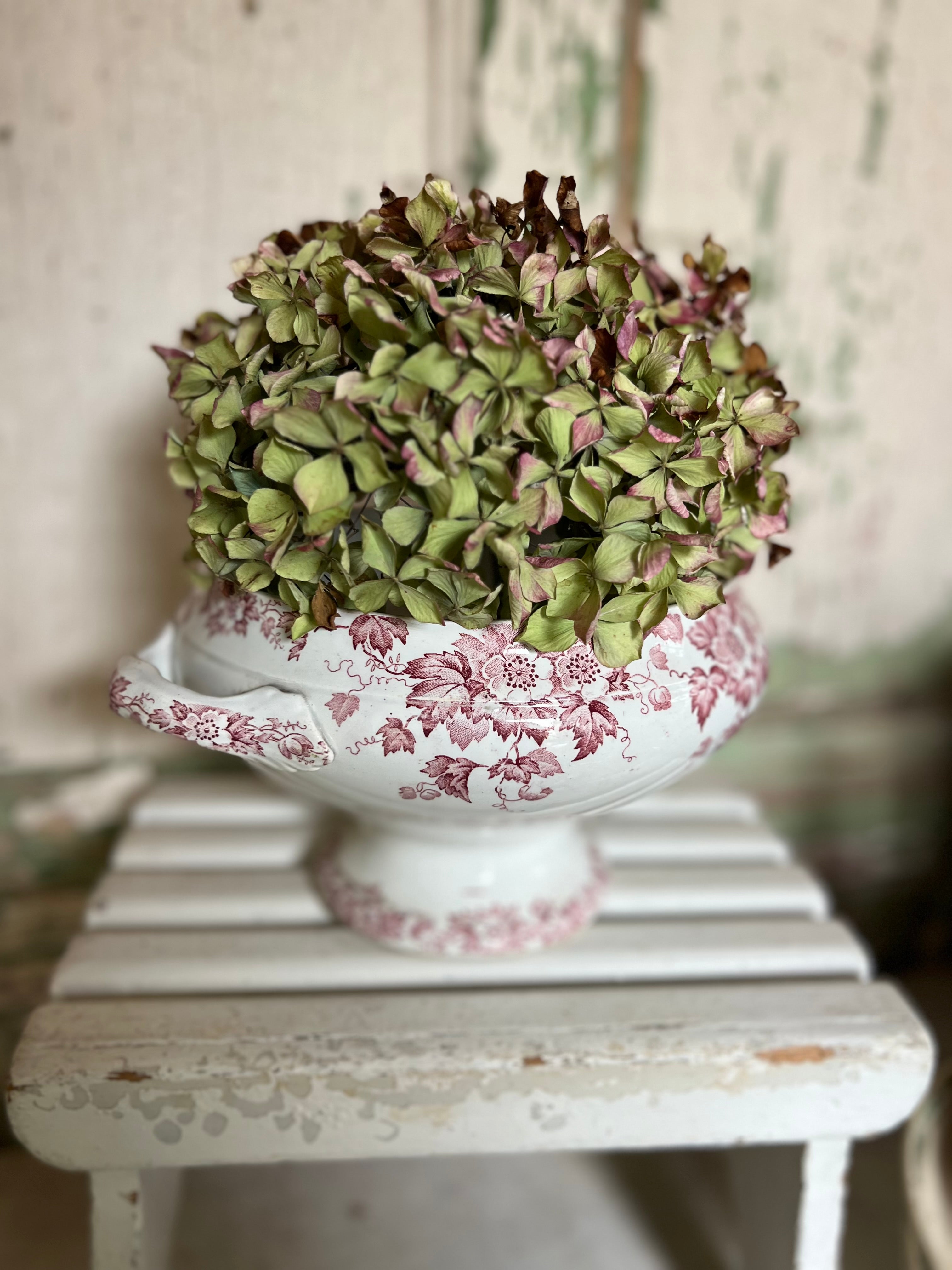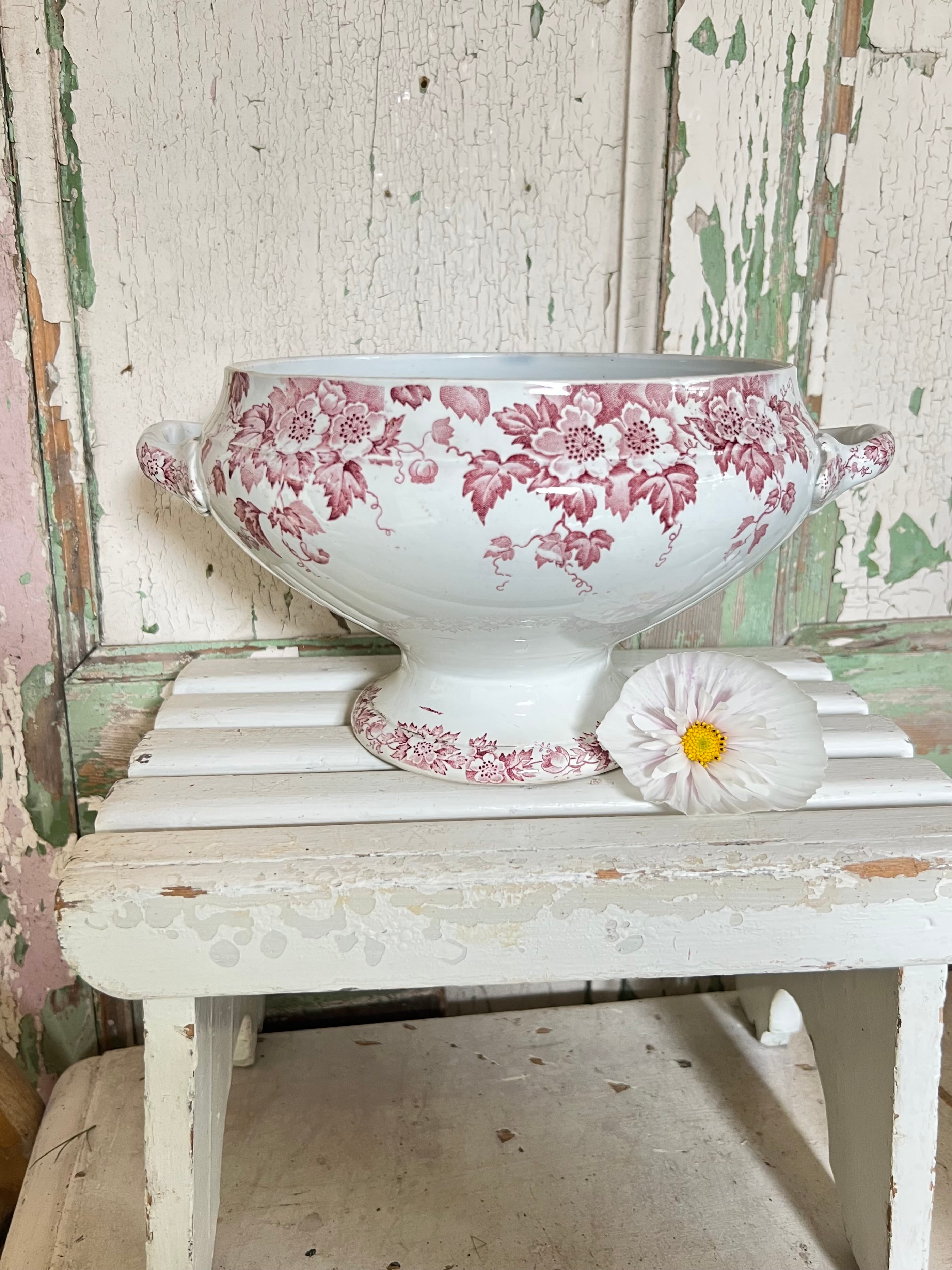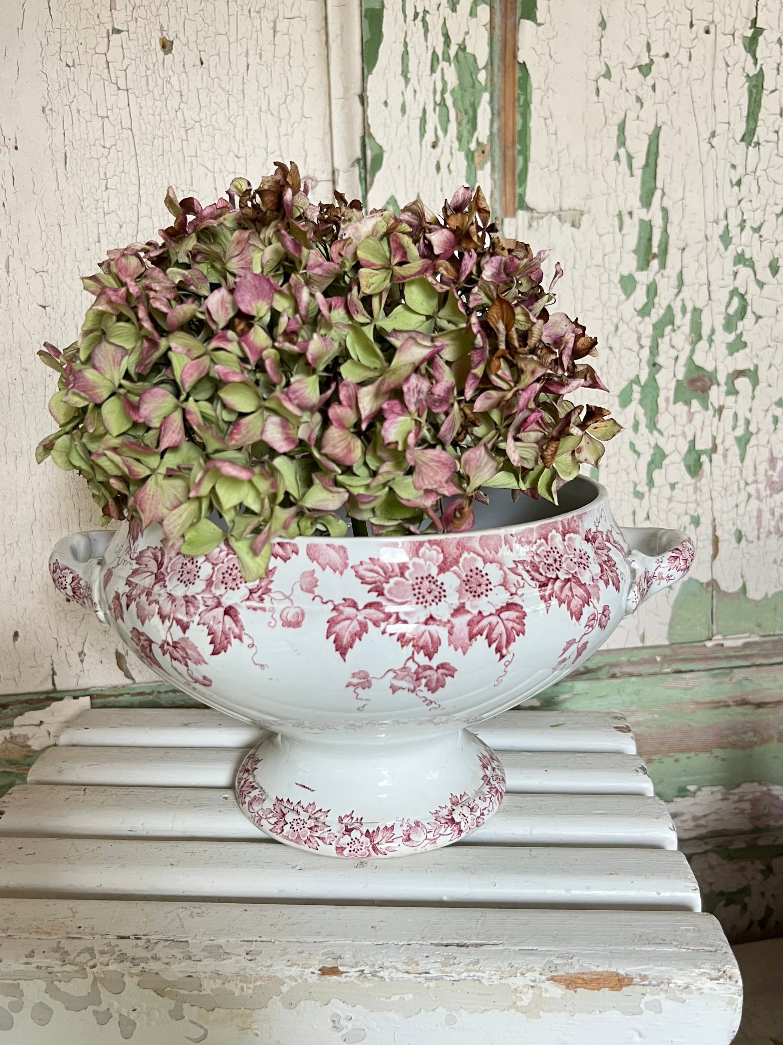 I’m always banging on about soupieres filled with bulbs or flowers.. and it’s even better if the said soupiere is pink and white! Imagine this filled with white Muscari and moss .. or planted with Violas . Anyway, she’s a beauty and in great condition