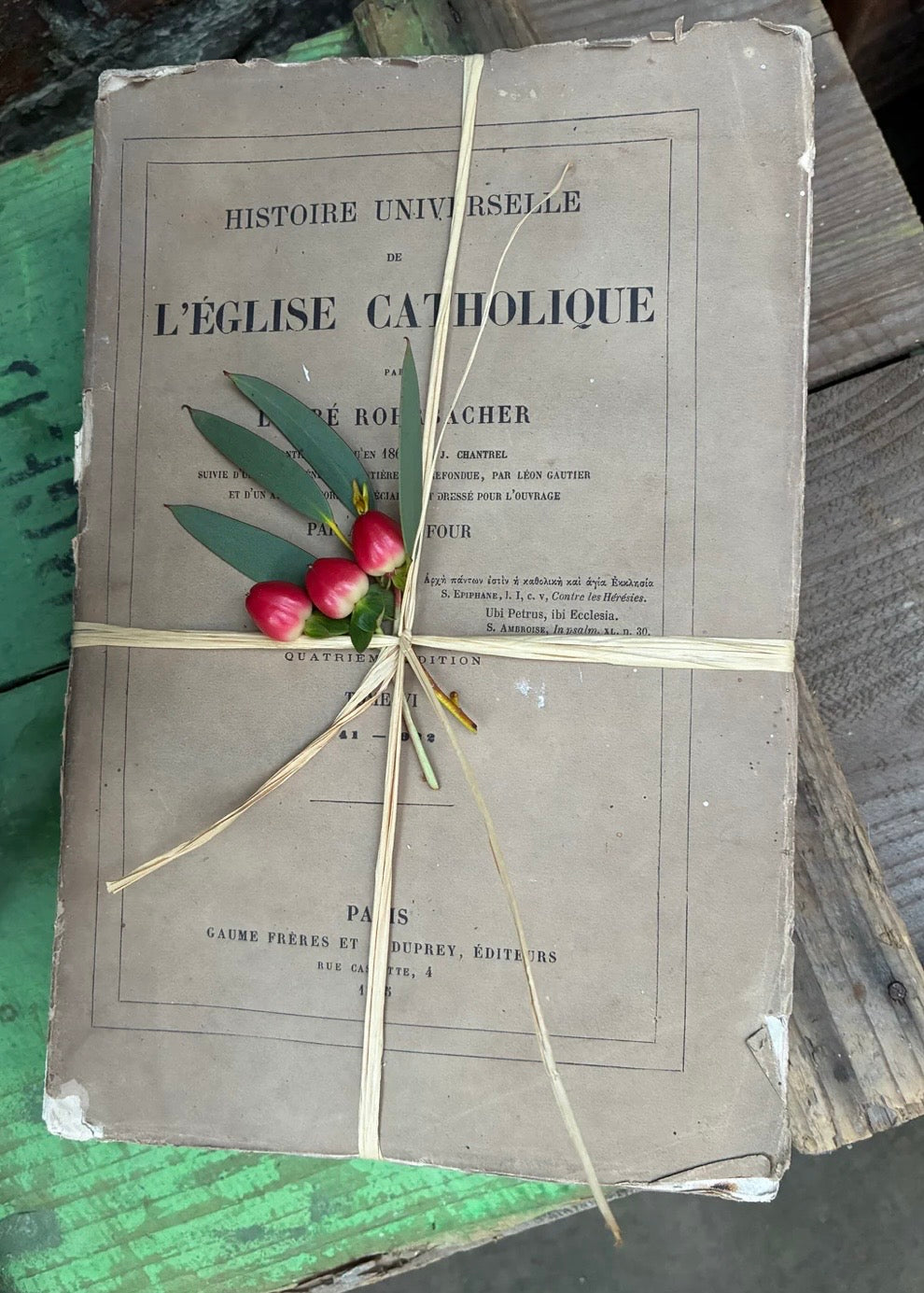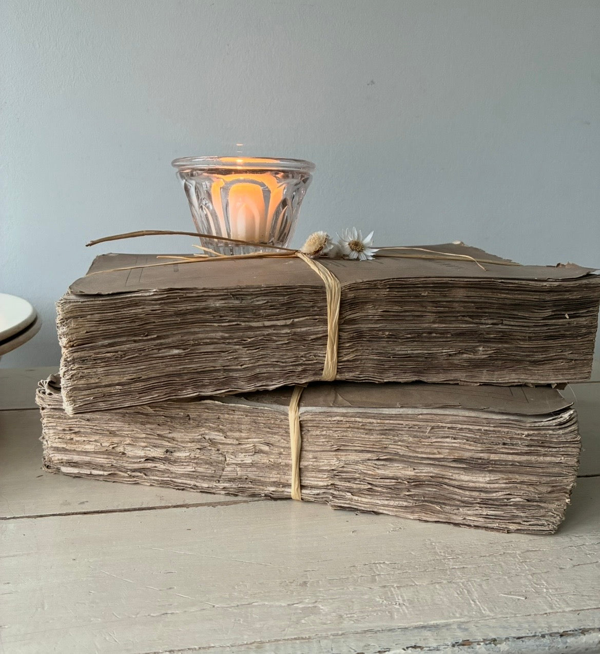 I love using old books to style with and these ones are gorgeous- the colour, the size and most of all the frilly pages! Pop them on a table or shelf or use to give height to a display. I’ve popped a little dried flower and a berry in them - you could do this with a bud from the garden or a dried beauty. 2 available- sold individually