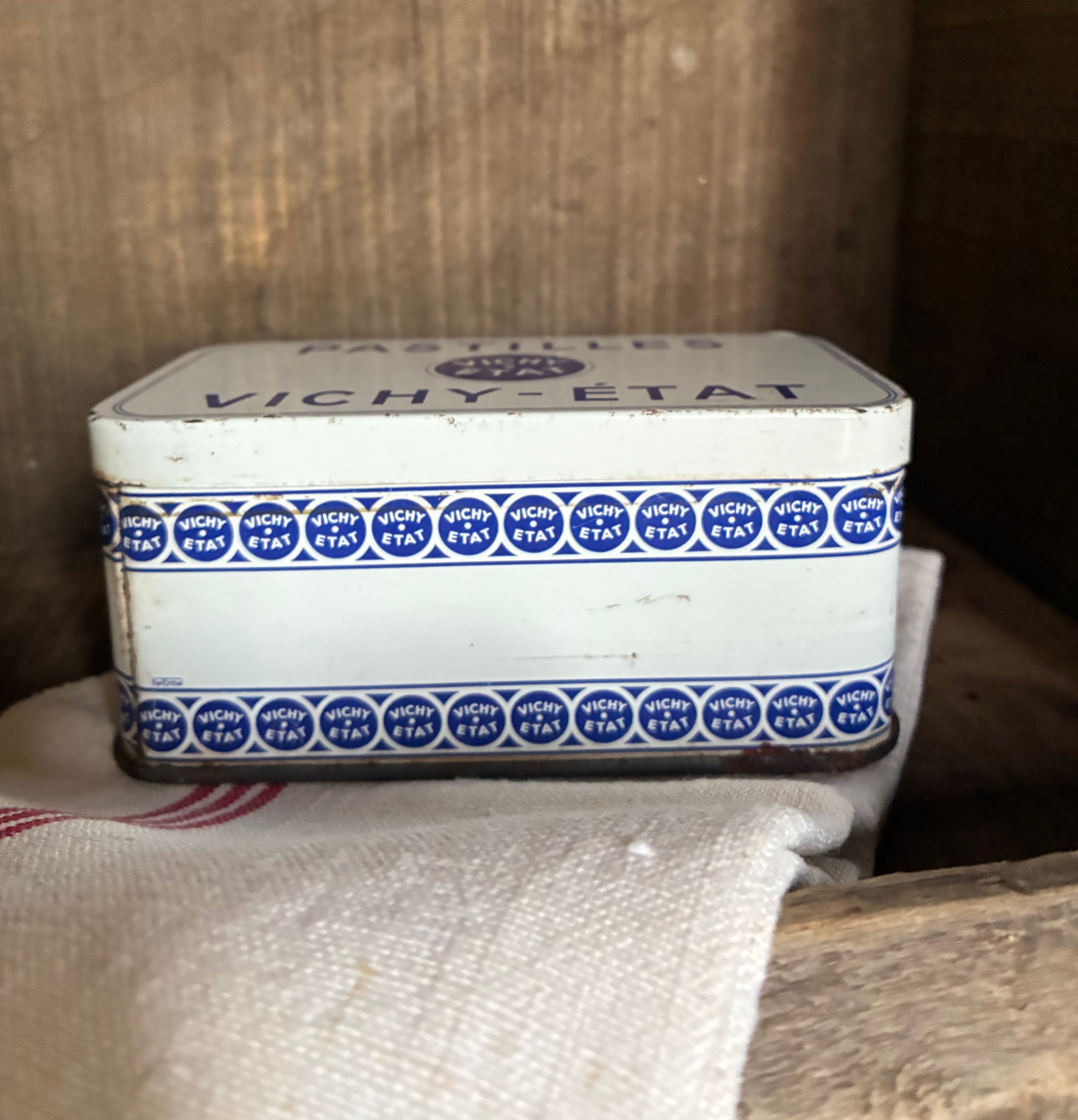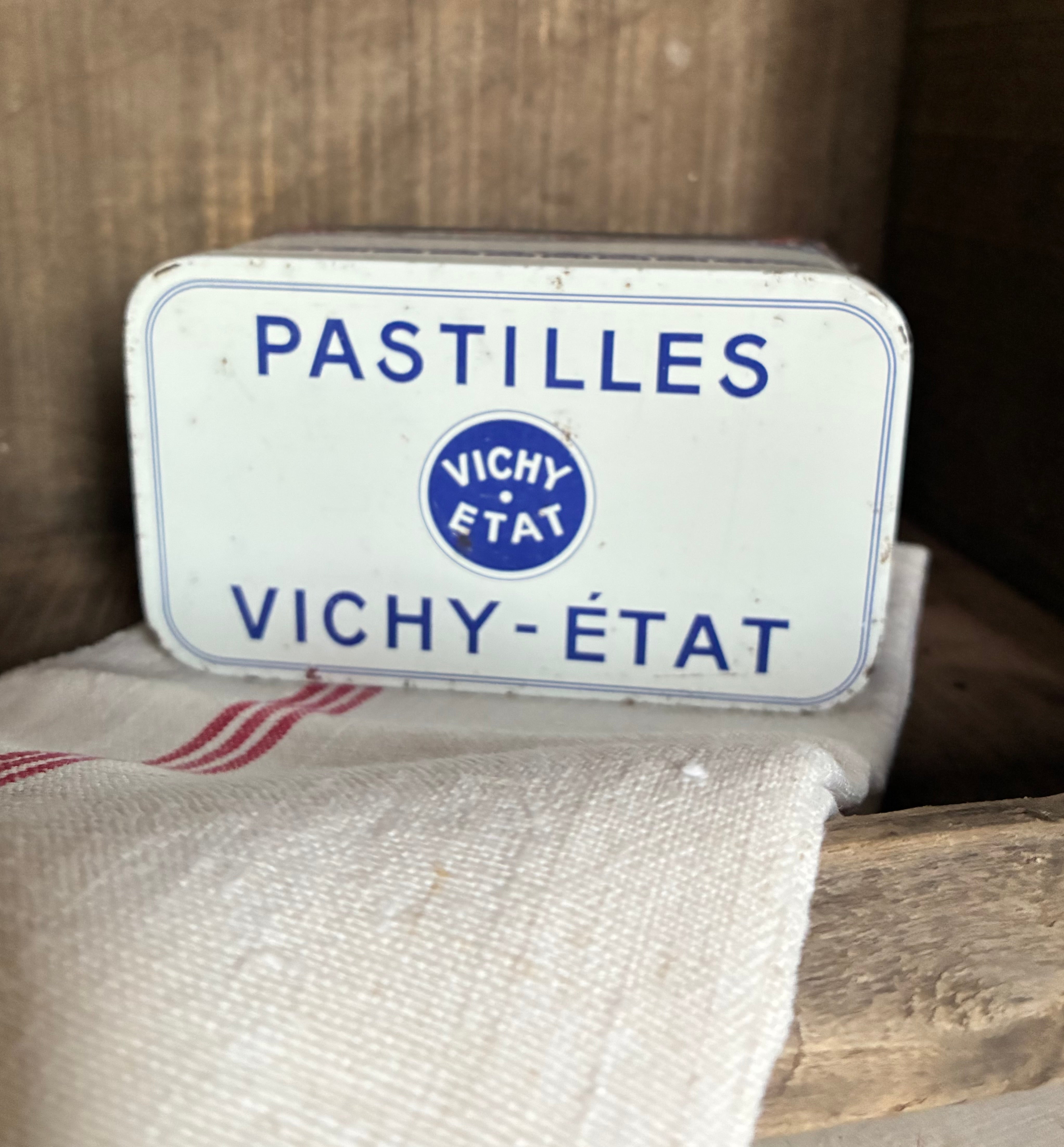 I’ve been buying these for years and still love them . They would have been filled with little mints originally but now are just really decorative. The colour and typography is typically French and they look great on a shelf .. maybe amongst some white ironstone or with some advertising pots .