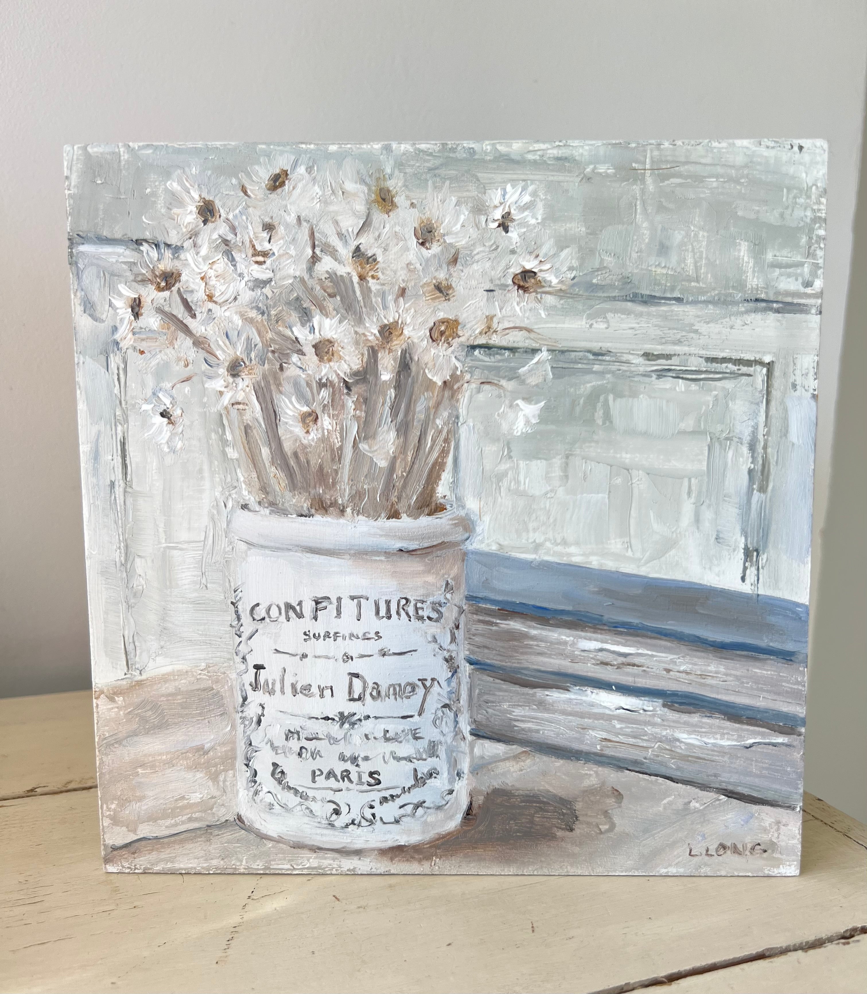 I absolutely love this, it could be my favourite original oil that we’ve had - dried flowers, a French confiture pot and lovely muted colours- it was always going to be a winner . . It’s perfect to pop on a shelf but it’s ready to hang if you prefer .