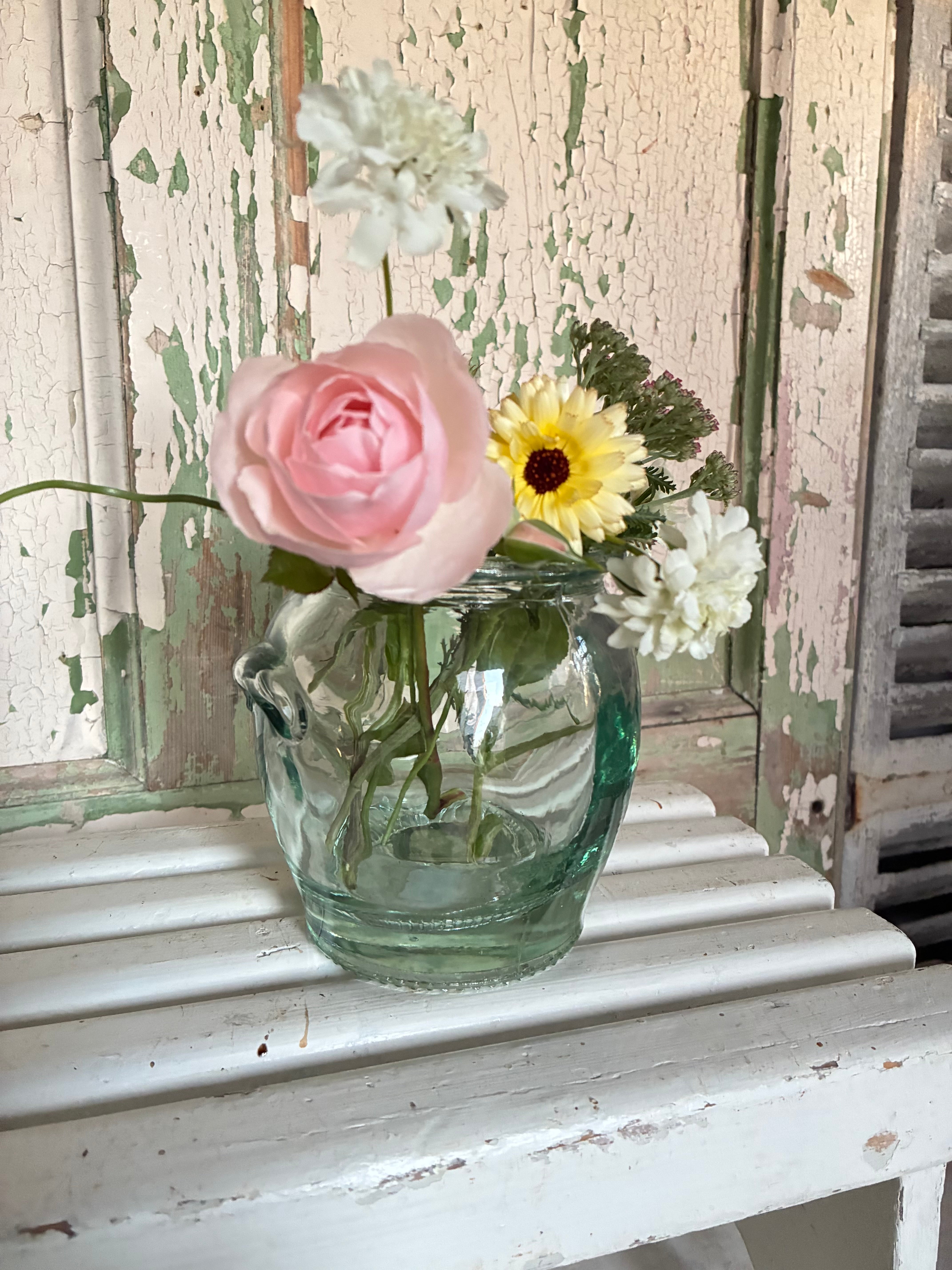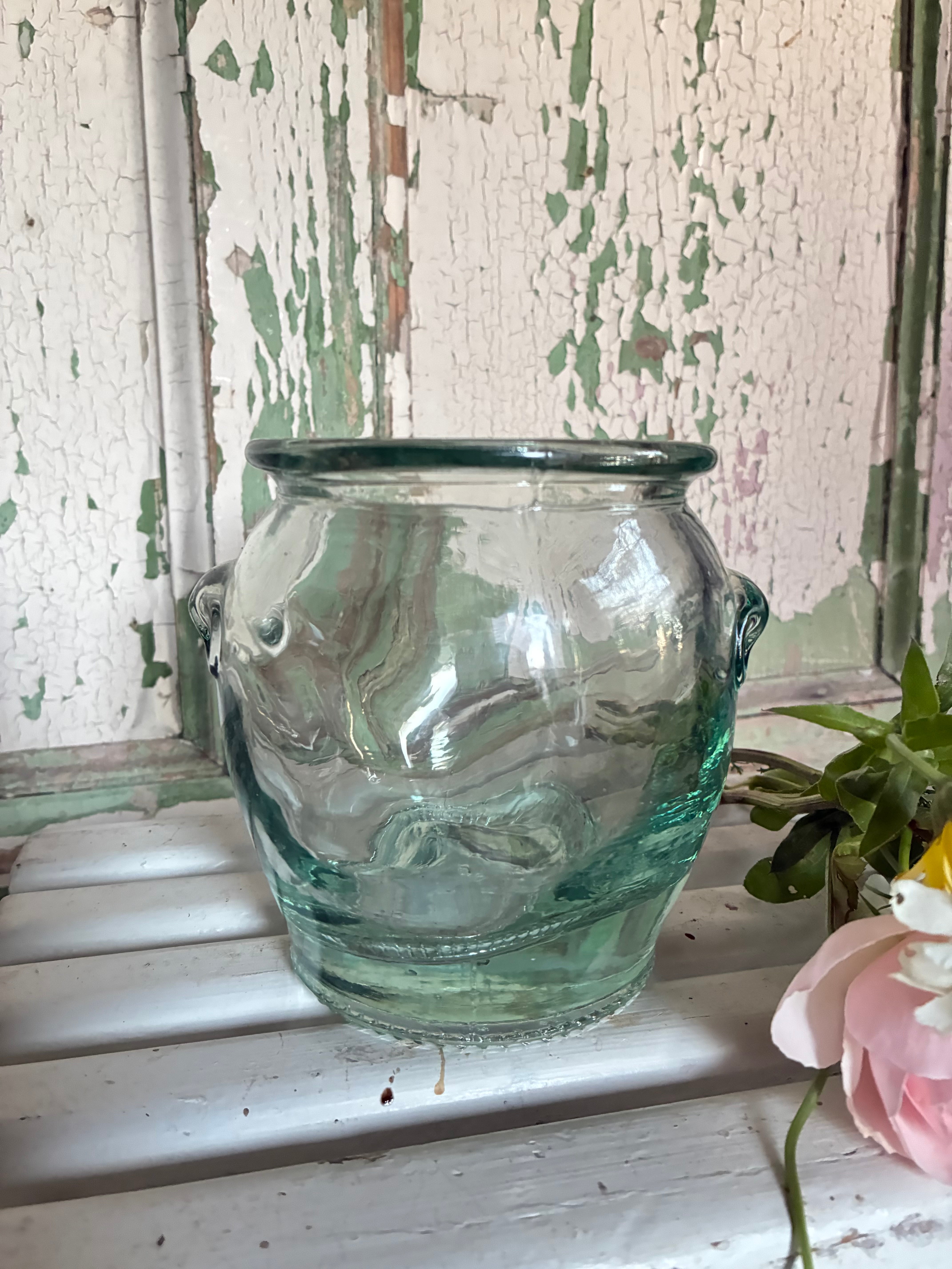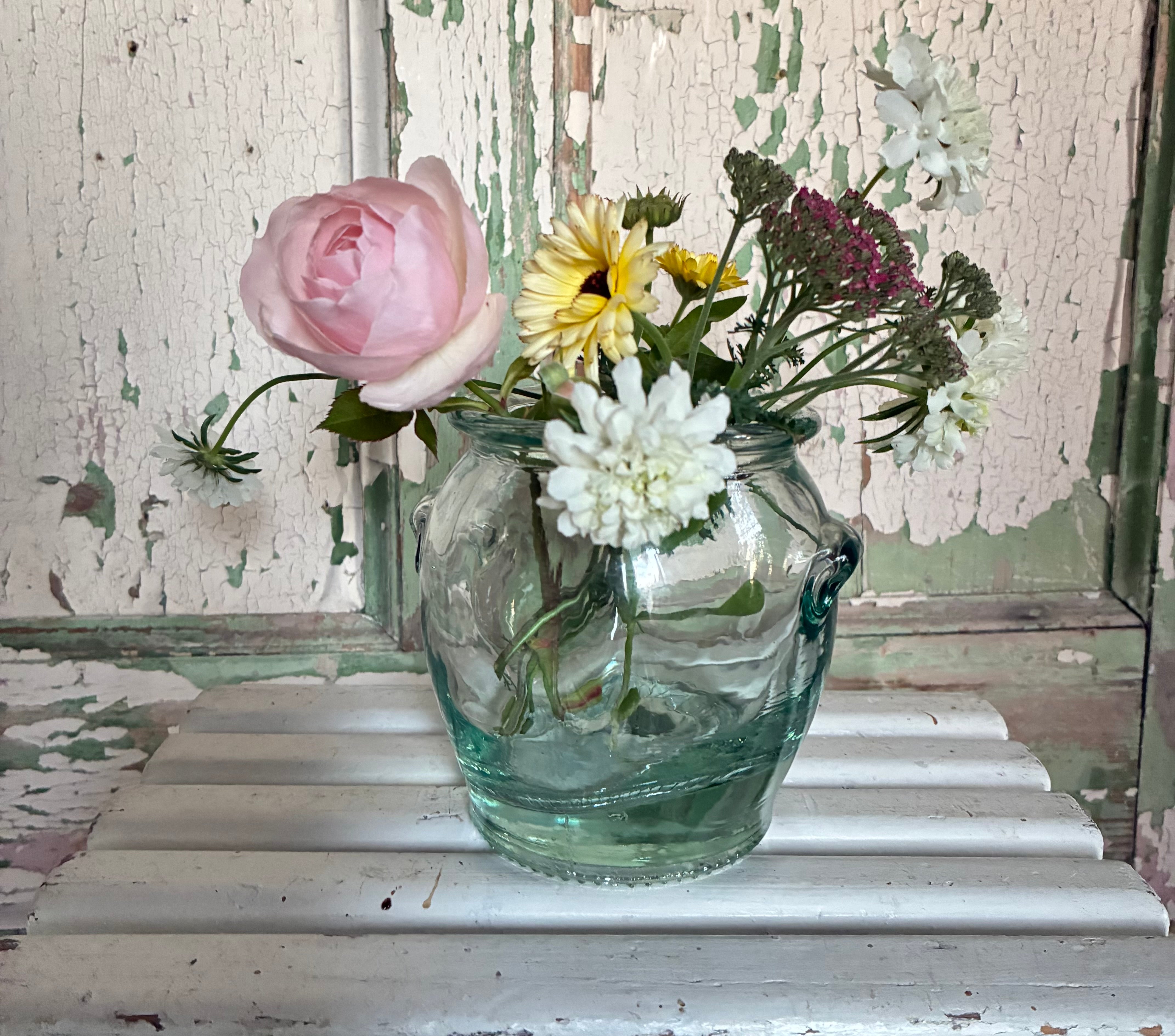 These glass confit pots are so pretty, perfect for a few flowers but lovely just as they are especially when the light catches the glass .